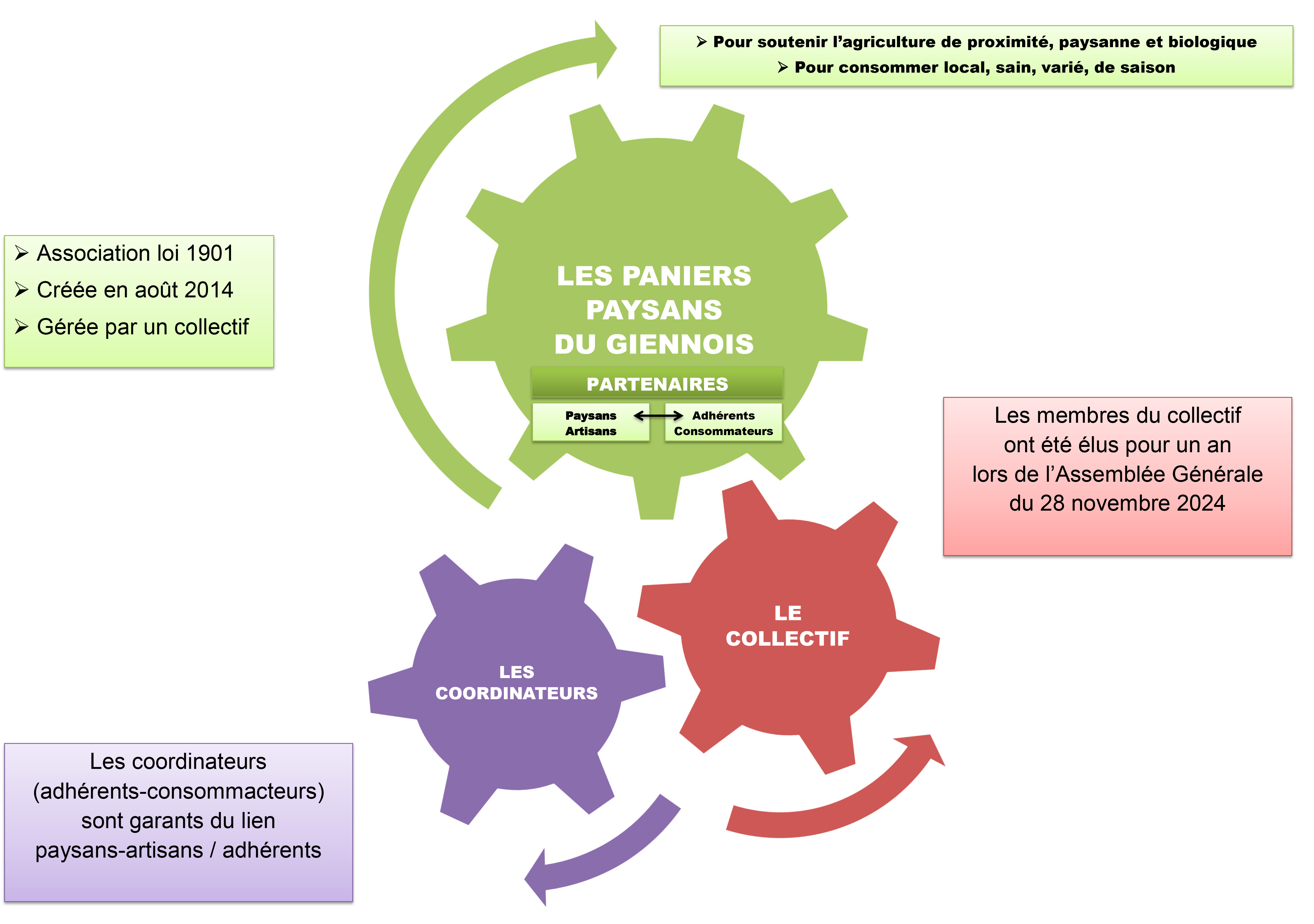 Collectif : Élu par l'Assemblée Générale, il gère l'organisation, les contrats, les livraisons, et propose des activités d'animation.
